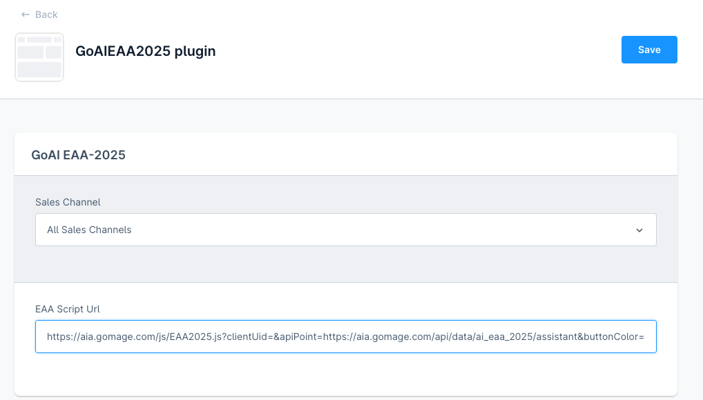 In the field GoAIEAA2025.config.scriptUrl, paste the generated script URL: